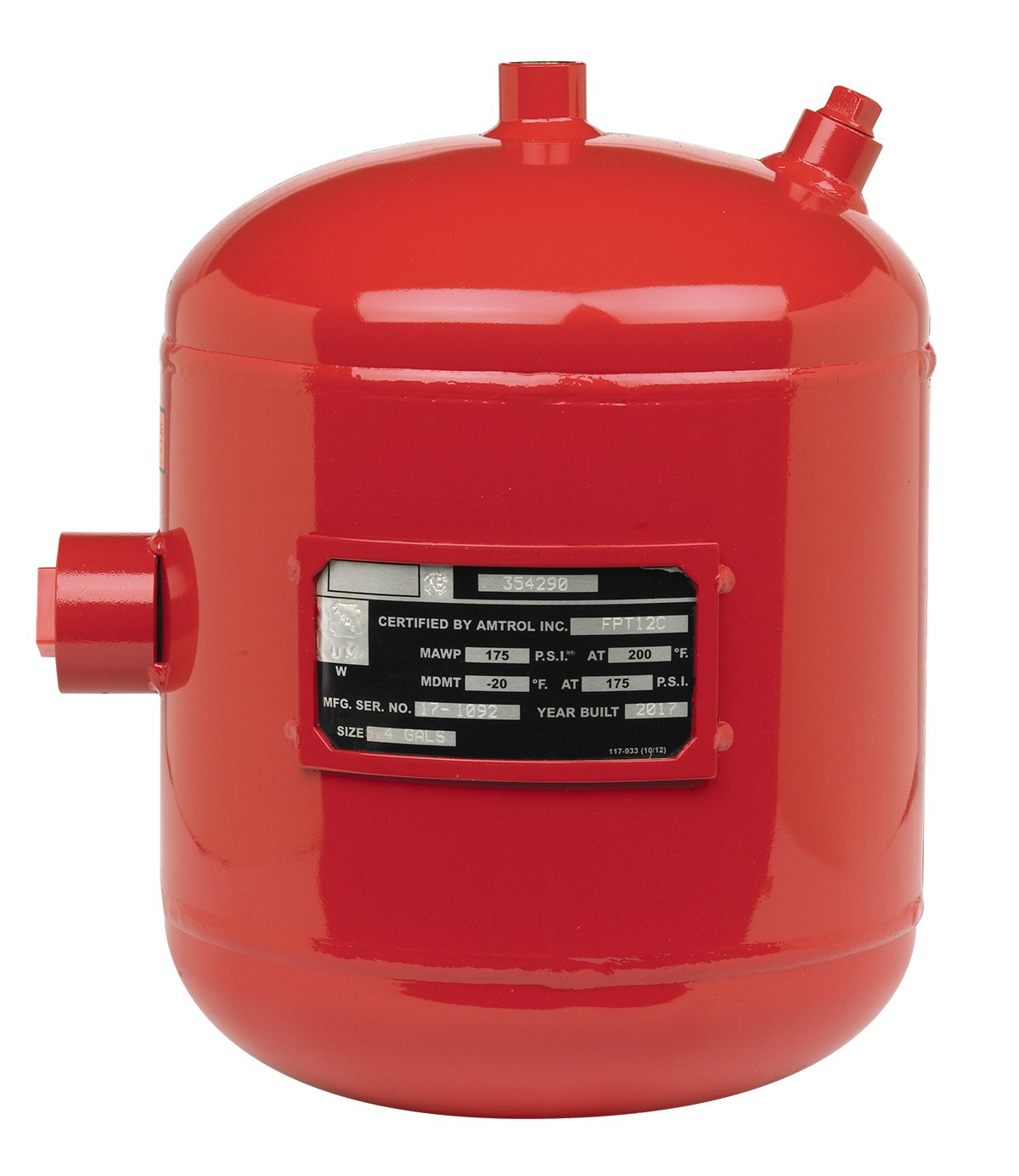 An expansion tank (sometimes referred to as a bladder tank) is a pressure vessel that uses a bladder inside a cast-iron bulb with an air valve on top. Based on pressure, the bladder takes in and expels listed antifreeze, instead of allowing it into the sprinkler system or to leak. Currently, NFPA does require expansion tanks to be listed.